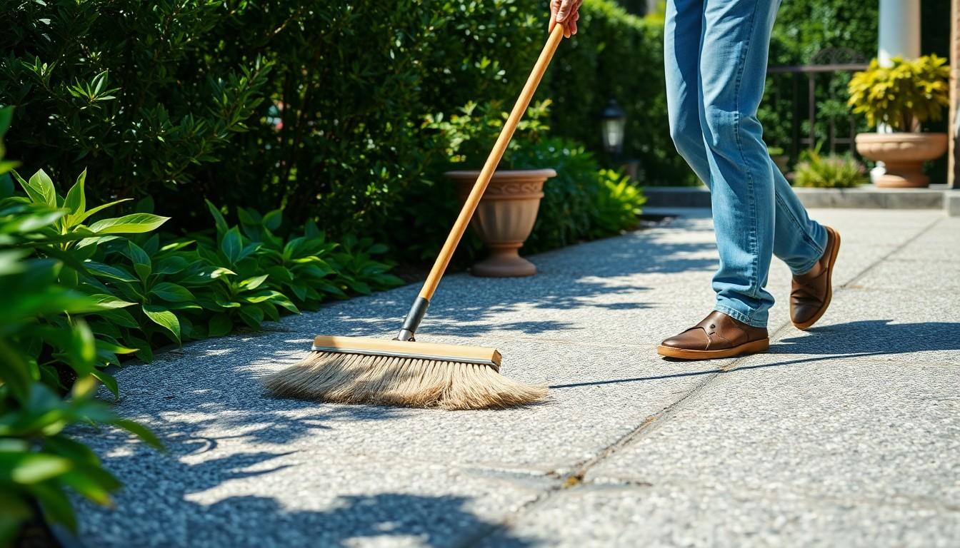 - Daily Sweeping: Sweep your patio daily with a soft-bristled broom to remove dirt, leaves, and debris. This prevents stains and avoids embedding materials that can mar the surface.