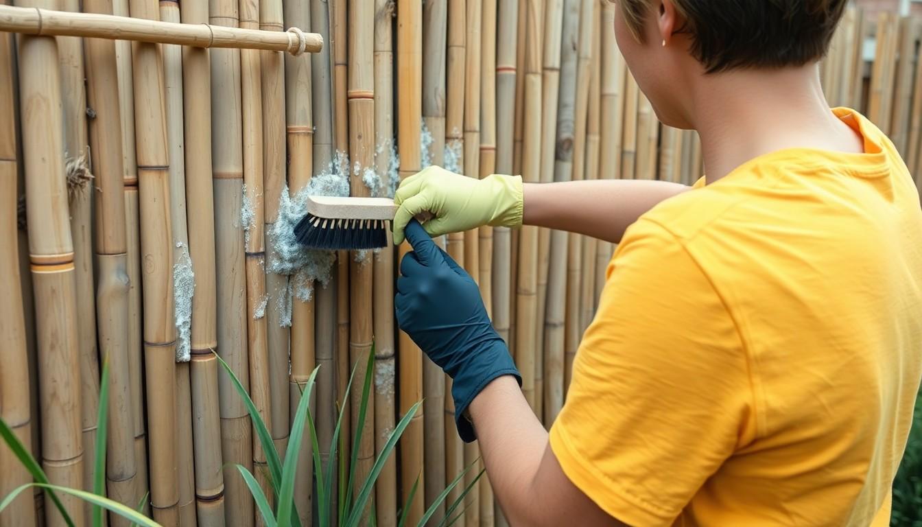 Maintain bamboo fencing by cleaning it with a mild solution, scrubbing gently with a stiff brush, and rinsing thoroughly. Ensure it dries completely before applying a wood preservative or sealant for optimal results.