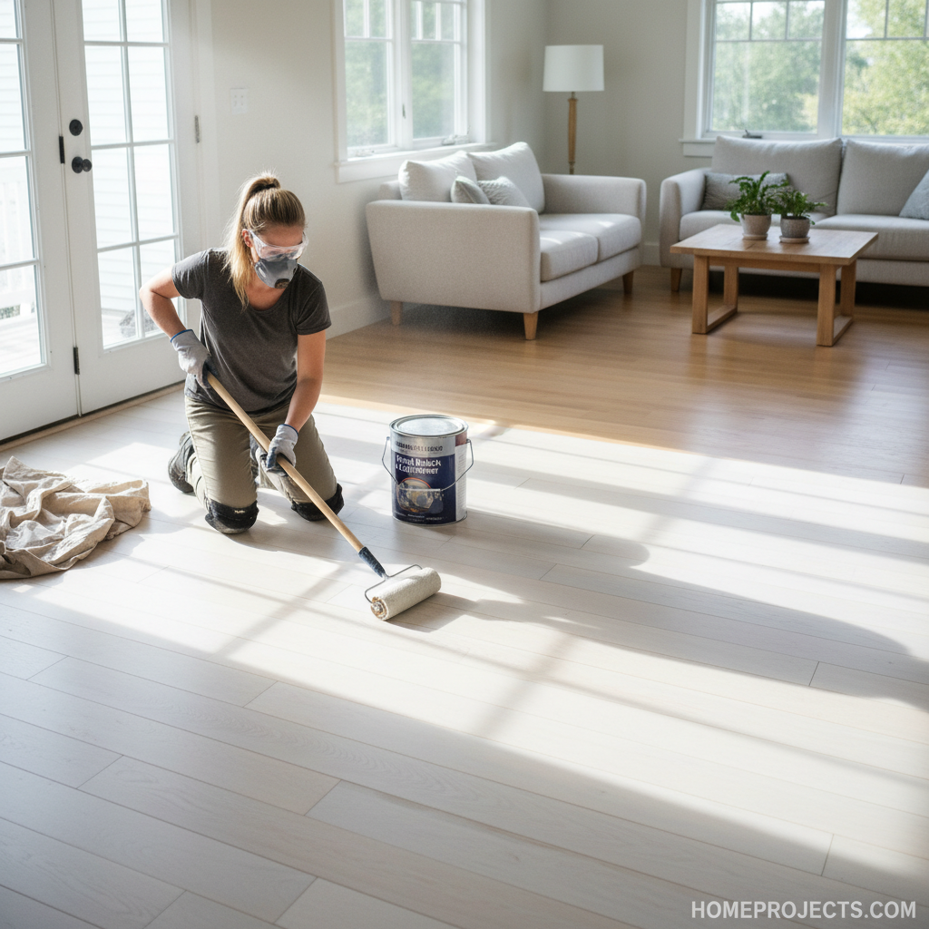 Employ a paintbrush or roller to apply the bleach evenly across the floor, ensuring full coverage. For the best results, allow the bleach to sit for the recommended duration, usually between 30 minutes to 1 hour, checking for desired lightening. After the treatment, neutralize the bleach with water, then rinse and allow the floor to dry completely.