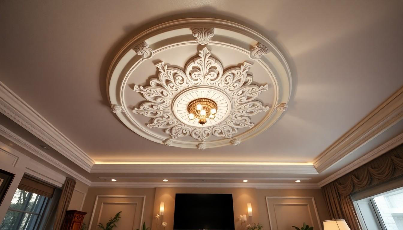 Classic ceiling roses feature ornate patterns and historical motifs, enhancing traditional decor. These designs create a timeless elegance in living spaces. - Contemporary Designs: