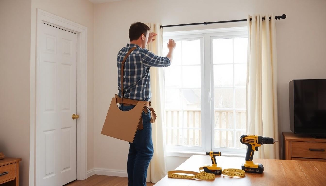 When installing curtain rods, measure for optimal placement by adding 2-5 inches for partially covering curtains and 8-15 inches for those hanging outside the frame. Position the rod 3-4 inches below the ceiling for a polished look. Use a cardboard template to mark locations accurately and ensure even drilling to avoid installation errors.