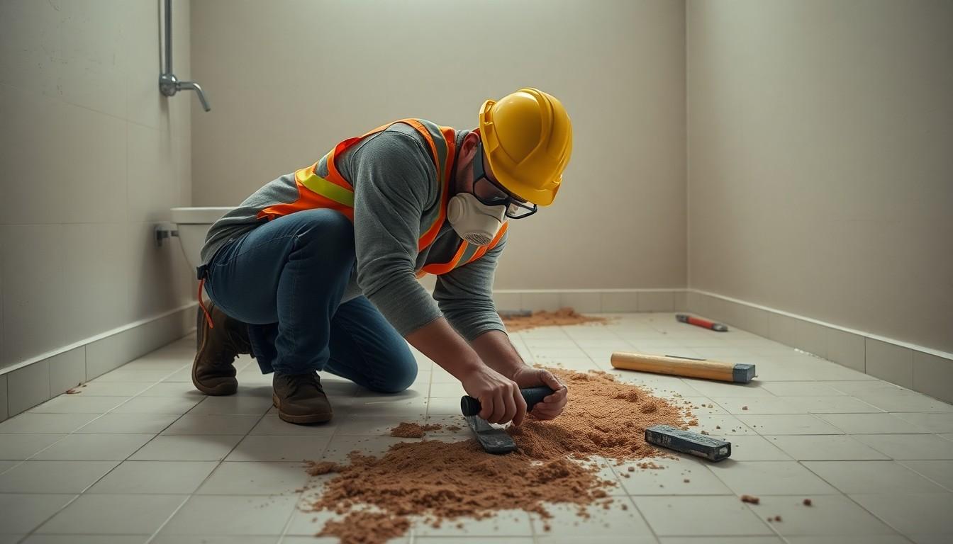 - Chisel out old tile carefully, removing any stuck pieces or mortar with a floor scraper. Ensure you protect adjoining rooms and maintain good ventilation. Wear safety gear, including eye protection and a safety mask[4].