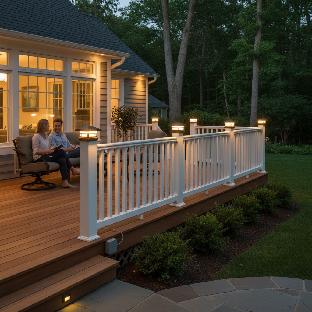 - Side-Mounted Rail Lights: Attach these to the side of railings to illuminate pathways while adding accent lighting.