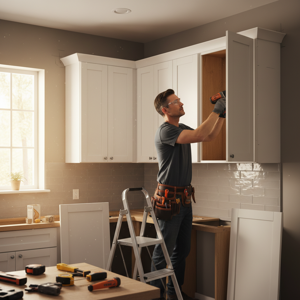 Installing wall cabinets transforms kitchen visuals:
