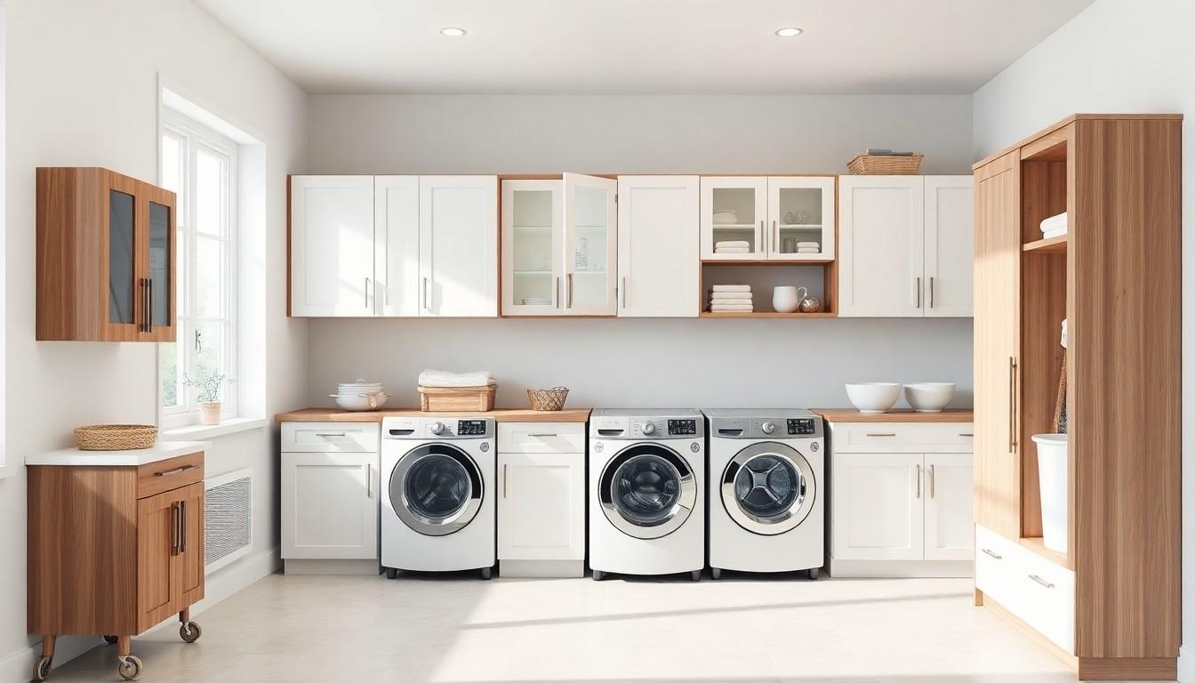 Selecting the right type of cabinet enhances both functionality and aesthetics in your laundry room. Two main categories of cabinets include wall-mounted and freestanding options.