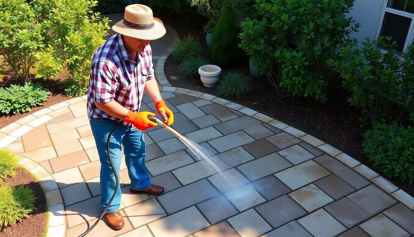 Sweep your pavers regularly to eliminate debris and dirt. Use a push broom or leaf blower for effective cleaning. Hose down the pavers occasionally to remove dirt and grime, preventing buildup that can detract from their appearance. - Using the Right Cleaning Solutions:
