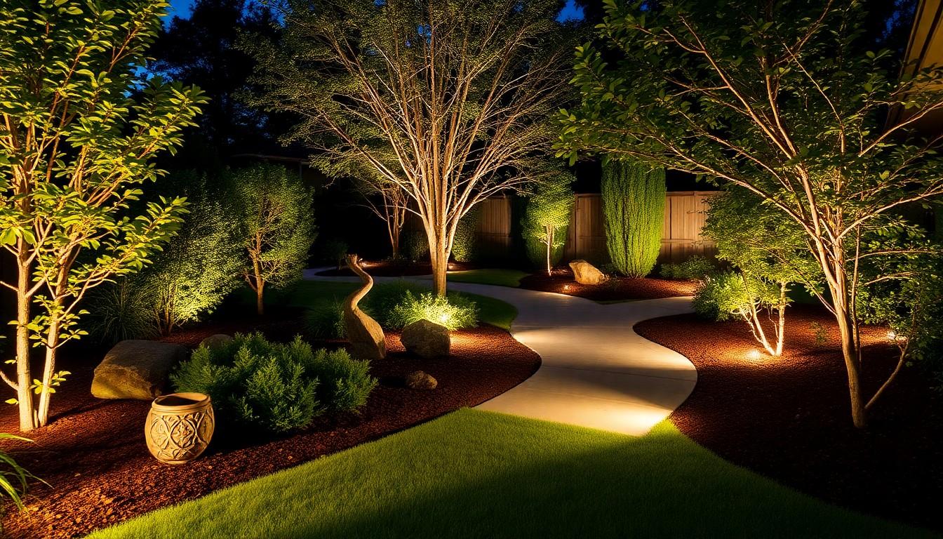 - Moonlighting: This technique mimics natural moonlight by placing lights high in trees, creating gentle illumination that adds depth to your landscape.
