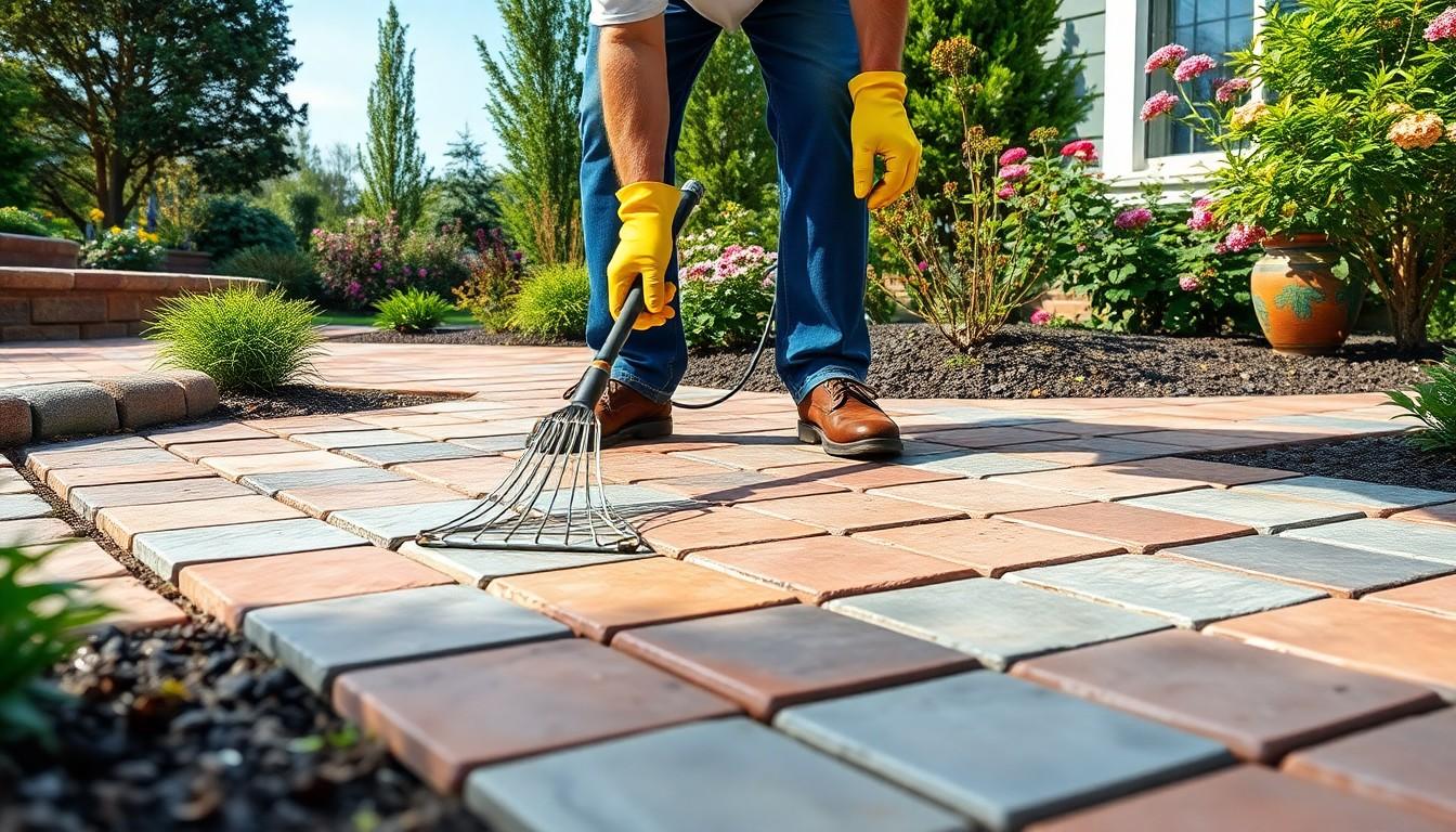 Regular maintenance includes sweeping, rinsing, and deep cleaning with mild detergents. Filling gaps with polymeric sand and reapplying it periodically helps prevent weed growth and keeps the pavers looking neat.