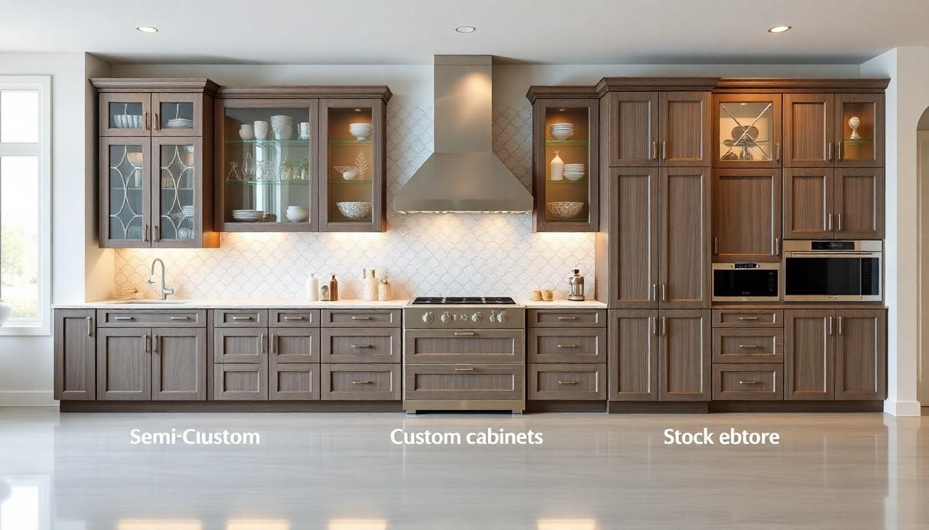 How do semi-custom cabinets compare to stock and custom cabinets?