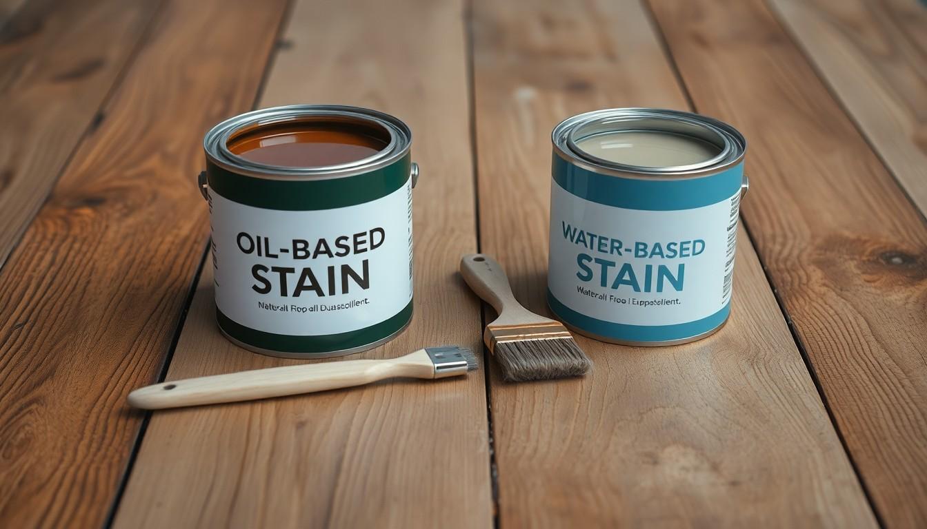 There are two primary types of stains: oil-based and water-based. Oil-based stains are known for deep penetration and durability, suitable for high-traffic areas. Water-based stains are eco-friendly, dry quickly, and have milder odors, but may require additional coats for desired color intensity.