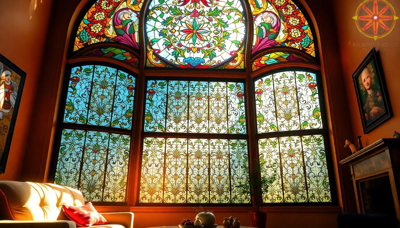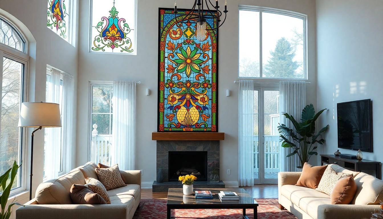 Stained glass windows enhance beauty and elegance in your home. They create a striking focal point, drawing attention and making spaces more inviting. Unique decorations can fit various themes and color palettes, allowing you to personalize your interior design. When sunlight filters through, the intricate details and bold colors produce unique lighting patterns that brighten your room while casting vibrant hues across walls. This artistry adds visual interest and elevates the overall ambiance.