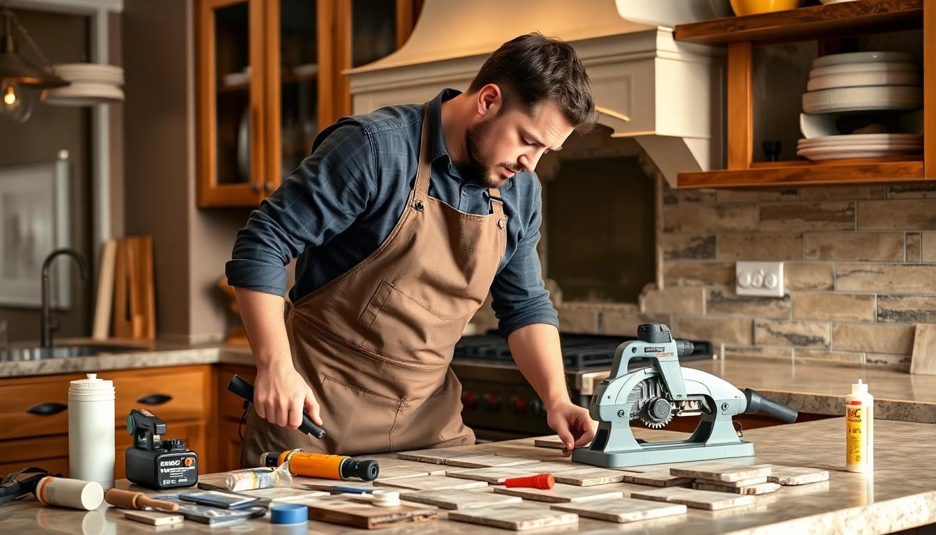 - Cutting tools: Use a wet saw for precise stone cuts.