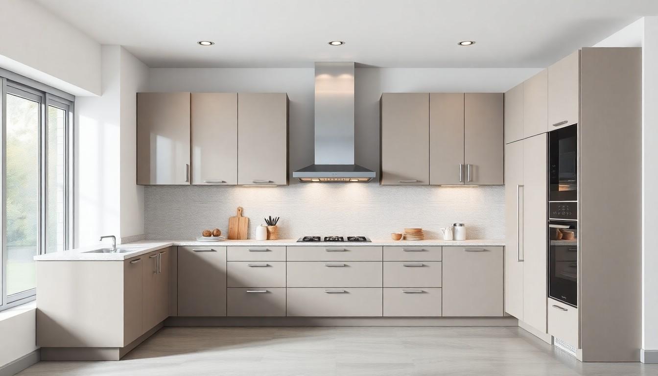 Tall kitchen cabinets enhance kitchen design by providing a modern and cohesive look. Available in various styles and finishes, they improve both functionality and visual appeal, making the space more inviting and organized.