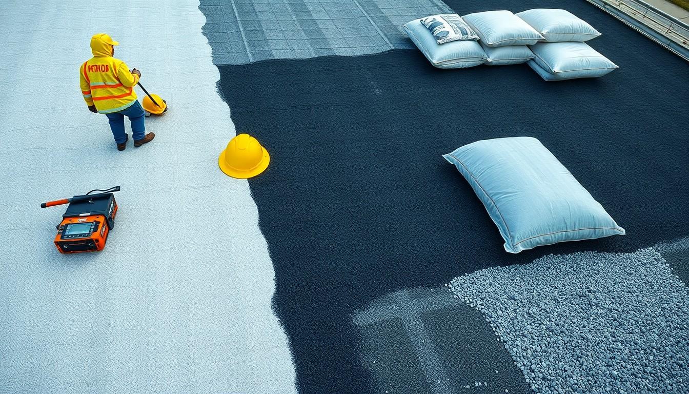 - You’ll need essential materials, including hot bitumen (tar or asphalt), reinforcing fabrics (fiberglass or organic felt), and gravel or mineral aggregate. These components work together to create a reliable, multi-layered roofing system.