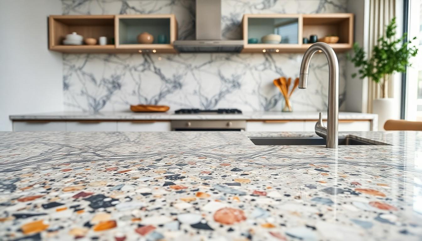 What are the benefits of using terrazzo countertops?