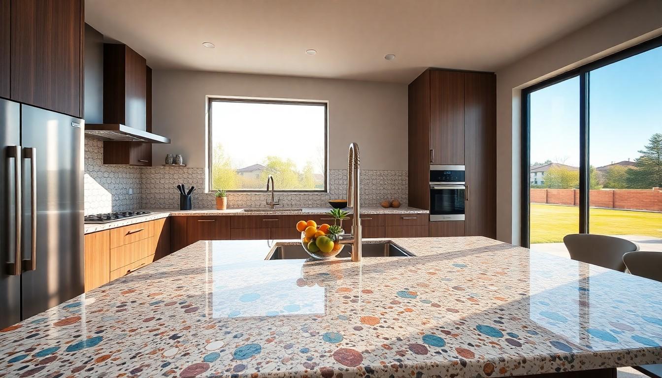 Choosing terrazzo countertops can transform your kitchen or bathroom into a stunning space. Their unique blend of materials not only offers aesthetic appeal but also ensures durability and longevity. With options for customization and eco-friendly aggregates, you can create a surface that reflects your style while being mindful of the environment.