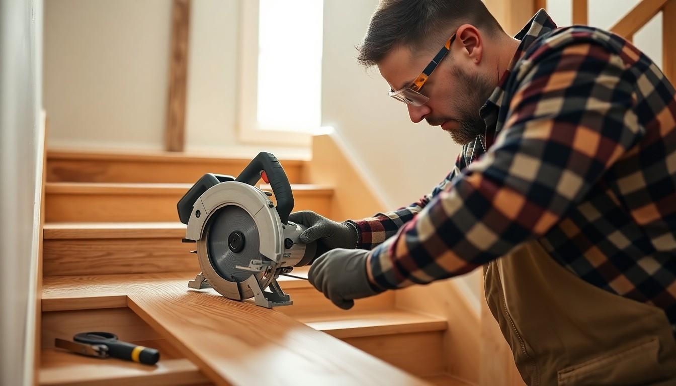 - Circular Saw, Miter Saw, or Table Saw: Required to cut wood treads and risers to precise sizes.