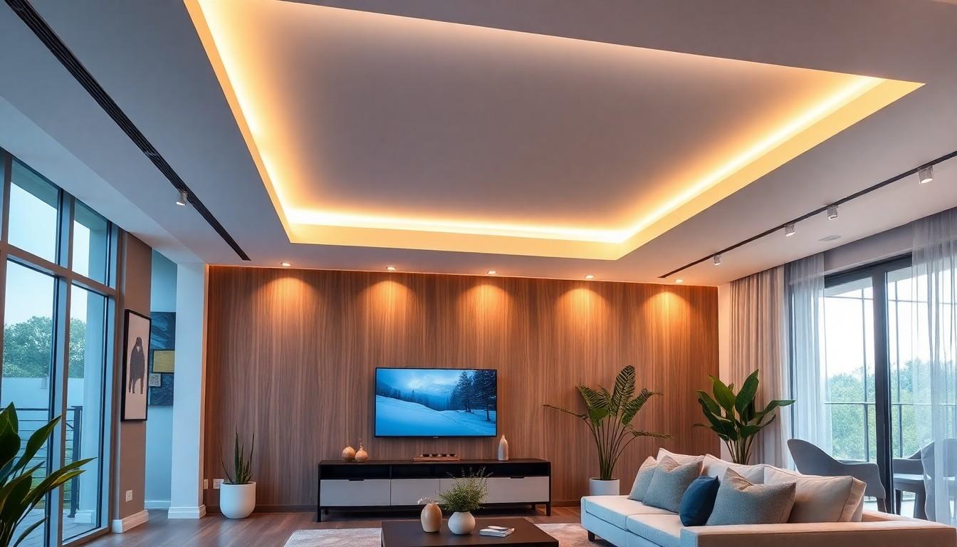 False ceilings enhance the aesthetic appeal of your room significantly. They transform spaces, adding elegance and sophistication. Your design options include coffered ceilings, geometric patterns, and floating panels. These ceilings facilitate creative lighting solutions, such as recessed lighting and cove lighting, which elevate the overall ambience and visual interest of your area.