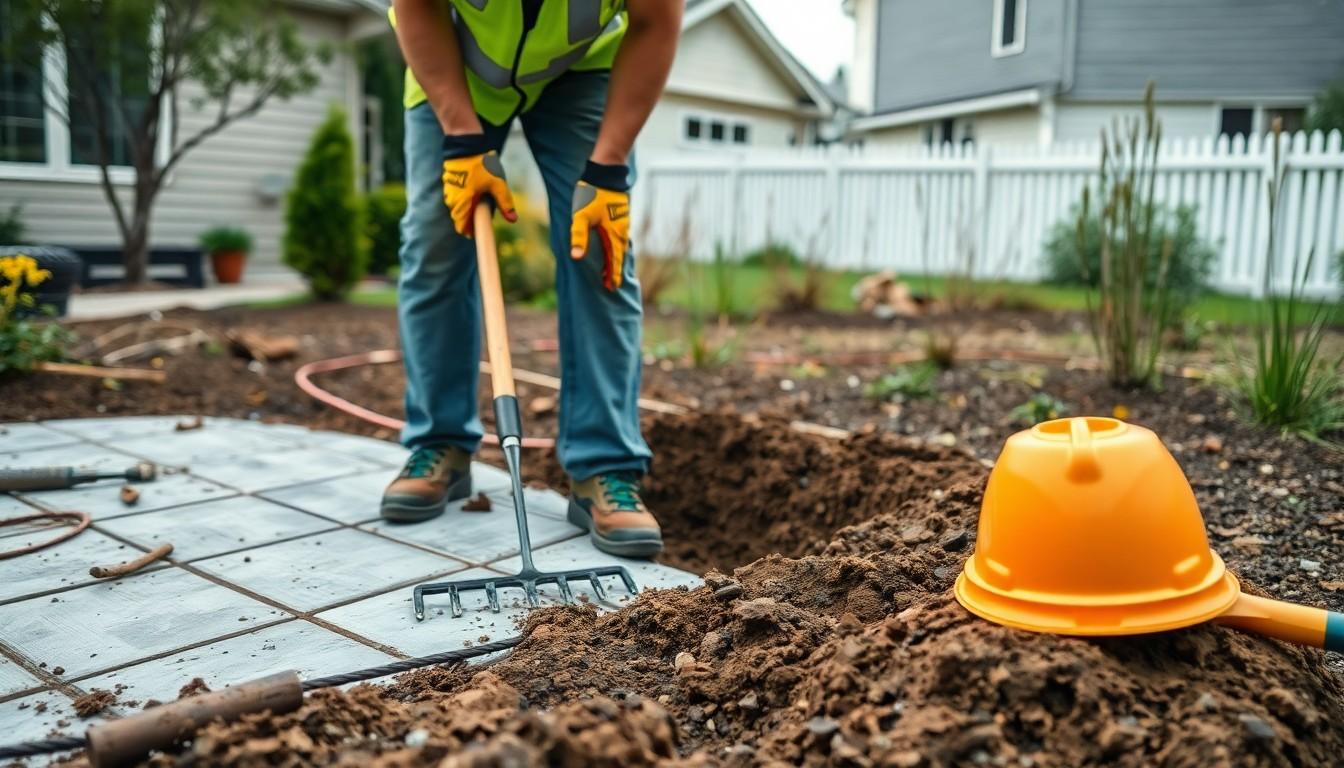 Excavate the marked area to a depth of 6-8 inches, based on your region’s climate and soil conditions. Level the ground using a rake and tamper, compacting the soil to establish a solid foundation.