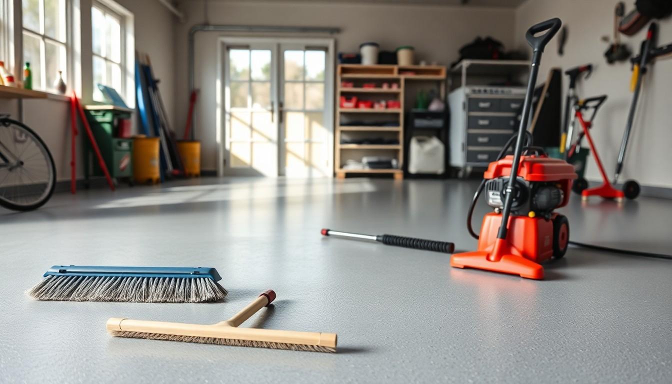 Regular maintenance keeps your painted garage floor in prime condition. Follow these tips for effective cleaning and touch-ups.