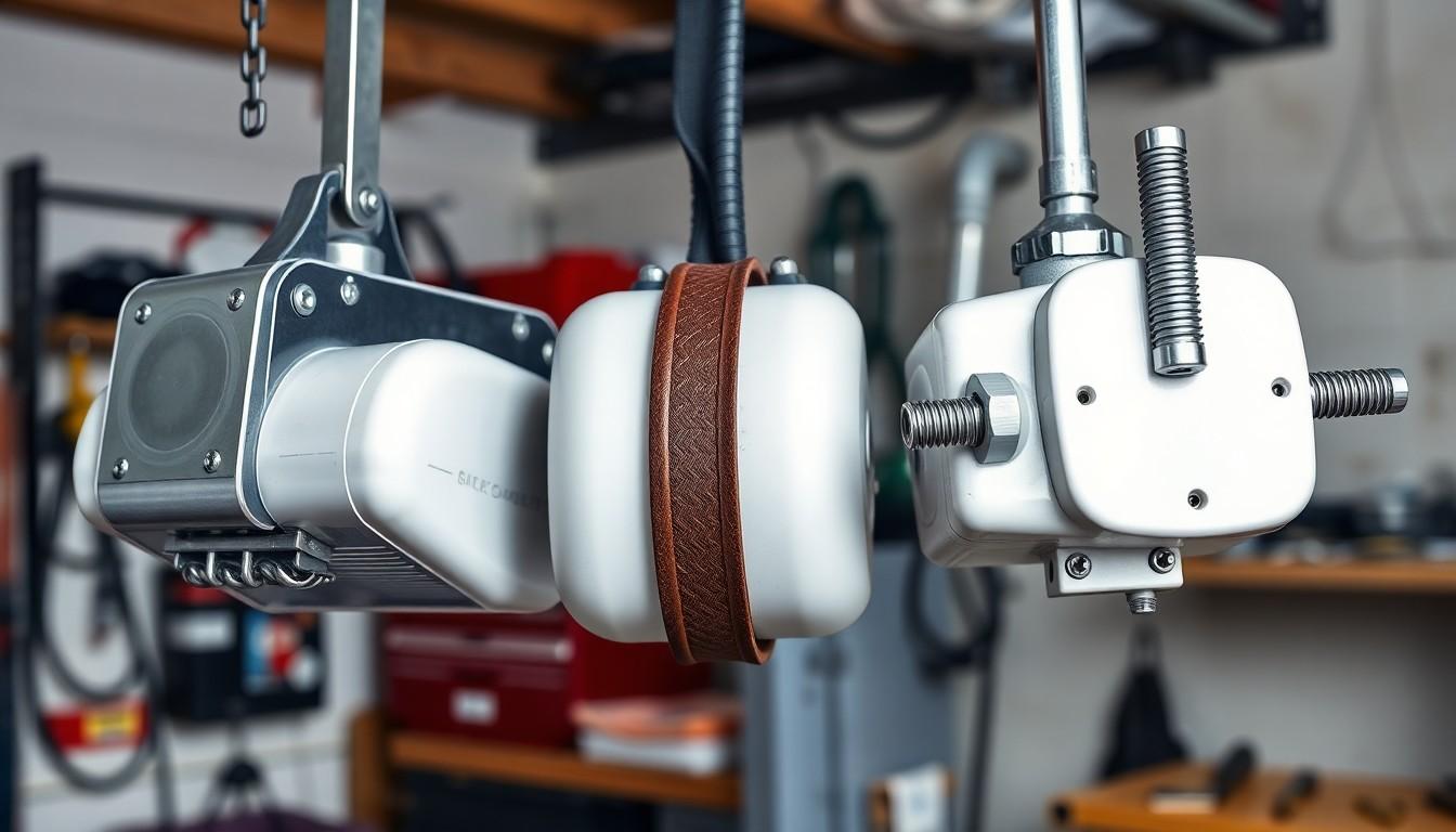 There are three main types: chain drive, belt drive, and screw drive openers. Chain drive openers are budget-friendly but noisier. Belt drive openers are quieter and smoother but more expensive. Screw drive openers require less maintenance and work well in various temperature conditions.