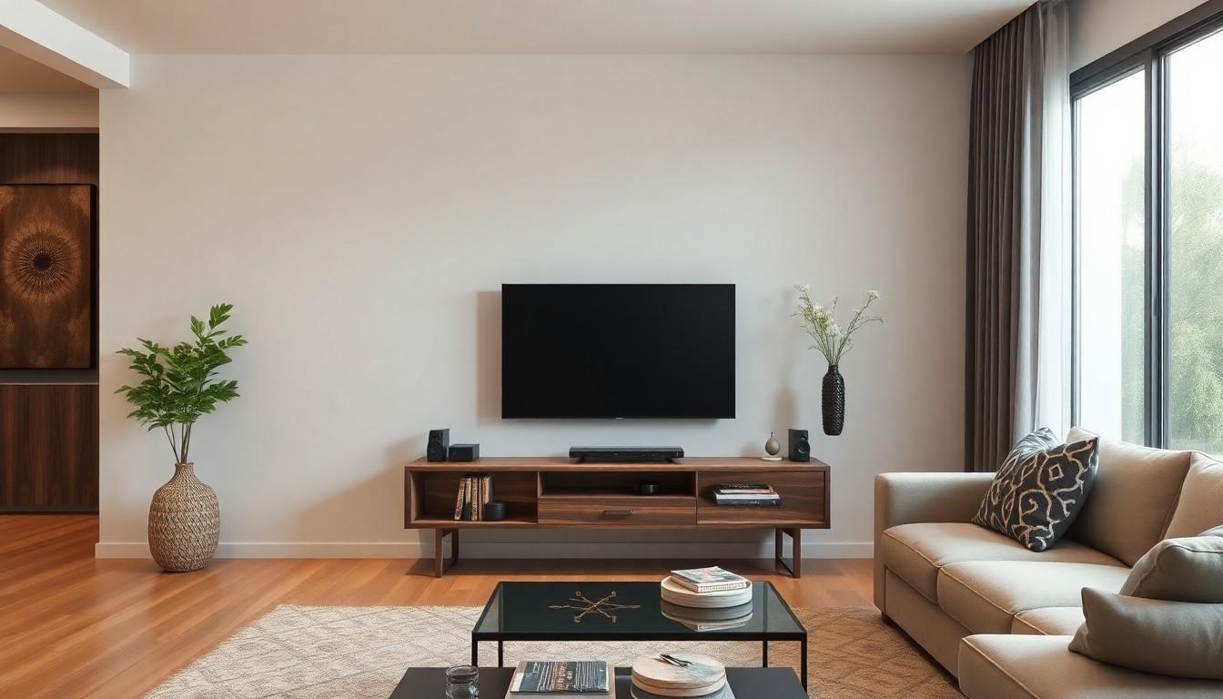 Neutral tones create a calming effect, allowing your TV stand to blend seamlessly with any decor. Think soft whites, grays, and beige. These shades boast versatility, giving you freedom to play with various accents without overwhelming the space. Prices for neutral-toned floating TV stands often range from $150 to $500, depending on the material and craftsmanship. Plus, they allow for easy cleanup if my pizza sauce splatters during the game!