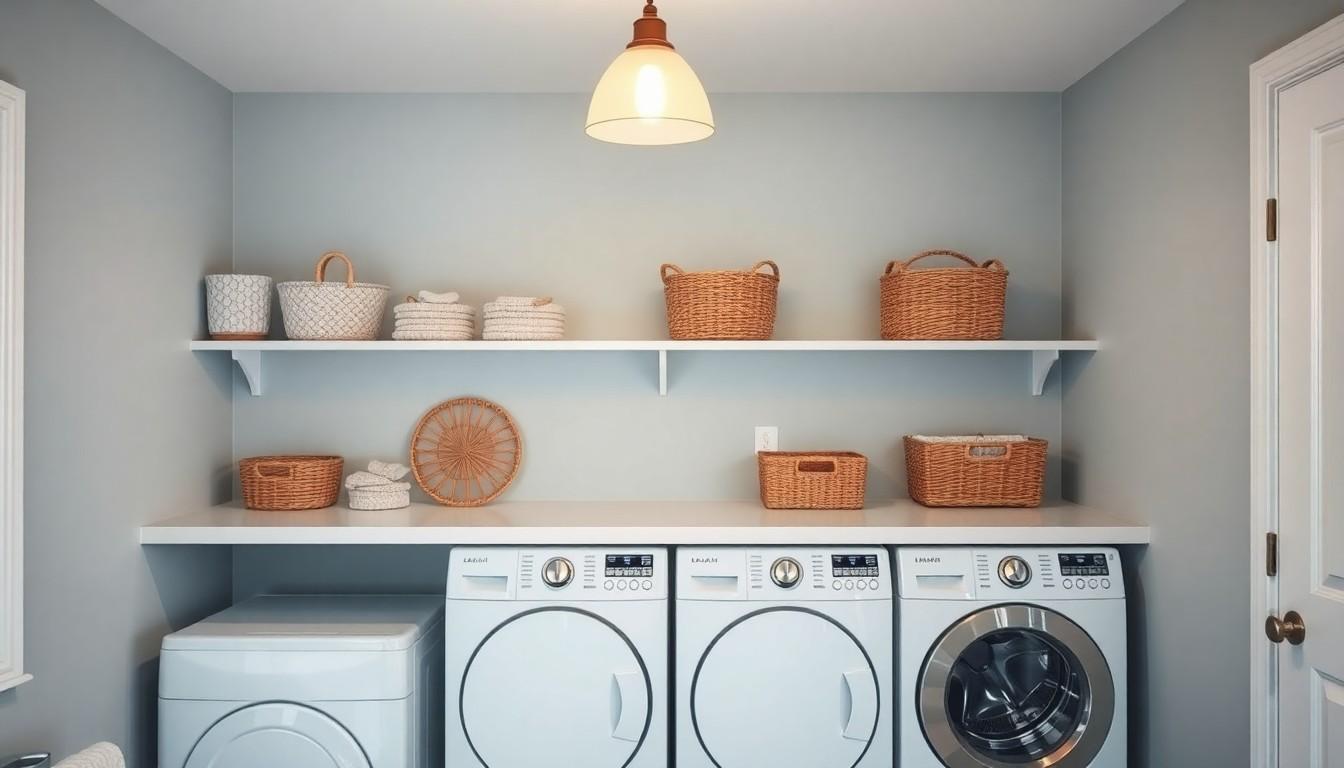 Baskets organize laundry and add aesthetic appeal. Choose stylish options like woven or metal baskets for a chic look. Costs for decorative baskets range from $20 for small designs to $100 for larger, more intricate ones. Group several baskets together on shelves for a pop of visual interest or use them for sorting colors instead of acting like a mismatched sock detective.